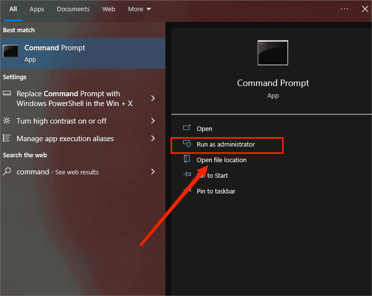 Step 1. Search for "cmd" in the Windows search bar. Select the Run as administrator option under Command Prompt.