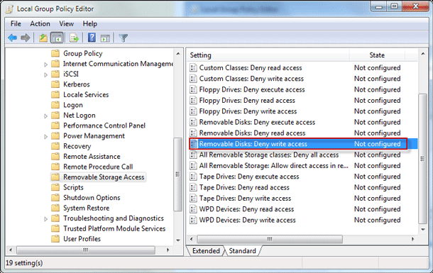 Navigate to Computer Configuration > Administrative Templates > System > Removable Storage Access, then double-click on the entry named Removable Disks: Deny write access from the right pane. Select Enable for the Removable Disks: Deny write access option to turn on the pendrive copy protection.