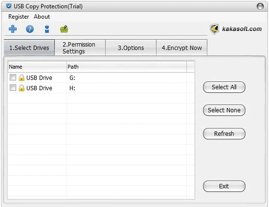 2. Select the USB drive you want to protect and lock it.