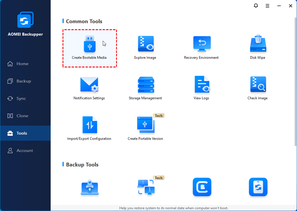 Click Tools and select Create Bootable Media. Follow the on-screen instructions to finish the job.