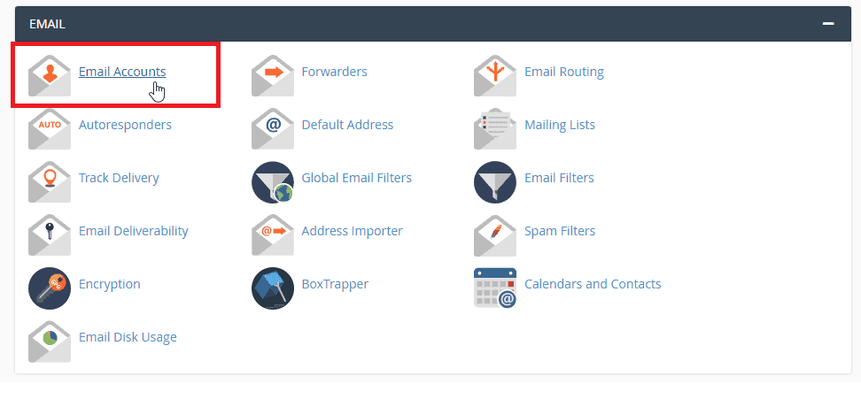 Step 1. Login to your cPanel account. Click on Email Accounts option under Emails tab.