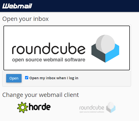 Step 3. Now click on Horde and click the Open button. The Webmail interface will open so you can view emails.