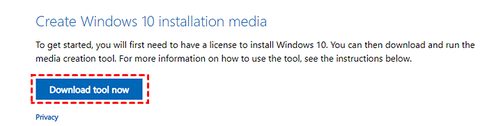 1. Go to the Windows 10 download page, and click Download tool now to download the Media Creation Tool.
