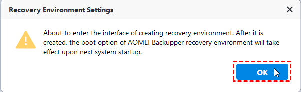 3. After the recovery environment settings are set, a confirmation window will pop up. Please click "OK" to continue.