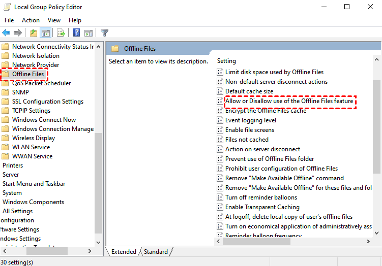 Computer Configuration\Administrative Templates\Network\Offline Files