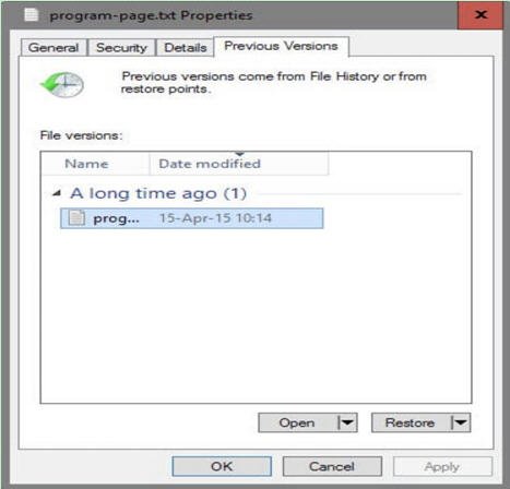 Windows creates backup files automatically from time to time. Deleted files can be easily recovered with backups. To restore files, make sure you have backups created before. Follow the steps shown below: