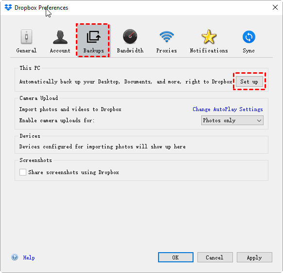 Method 1. Use Dropbox Backup to Set up Specific Folder Backup