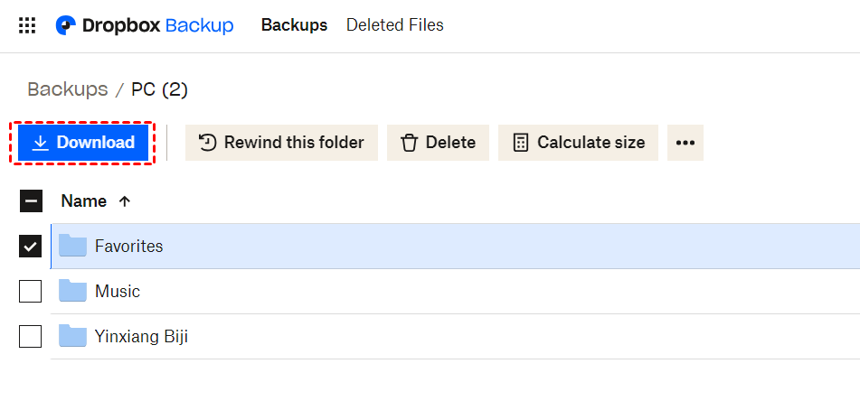 After backup, you can access your backed up files from dropbox.com/backup/all and restore your backed up files and folders. To restore folders backup from Dropbox Backup, sign in to dropbox.com, click the grid icon in the top-left corner, click Backup from the menu that appears, and select folders you’d like to download, then click Download.