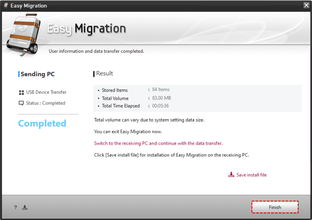Easy Migration is a software program developed by Samsung Electronics. Generally, it is pre-installed on most new Samsung computers. It offers a hassle-free method to transfer your data and settings from one PC to another. You can use it transfer a variety of data from your old PC to new PC, such as: