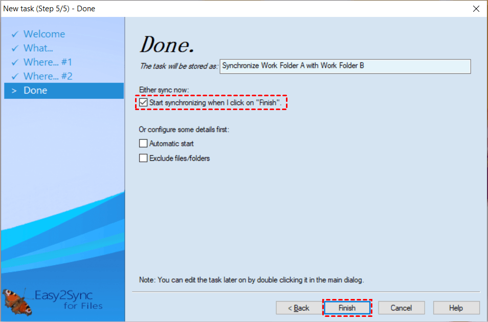 1. Download Easy2Sync for Files from the official website and install it on your PC. Once it is installed, you can choose to create a task now or leave the wizard. Here I choose leave the wizard.