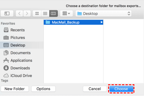 Step 3. Select the destination folder where the output files will be saved and click Choose. The exported mailbox will be saved as an .mbox file, which you can store, transfer, or import into another email client.
