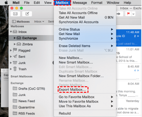 Need to export mailbox on Mac
