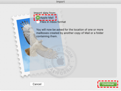 Step 2. Check Apple Mail and click Continue.