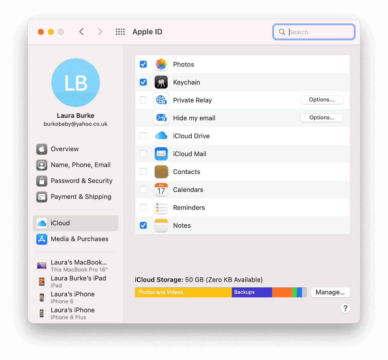 - Click on "iCloud" and then "Manage" to check your storage usage.