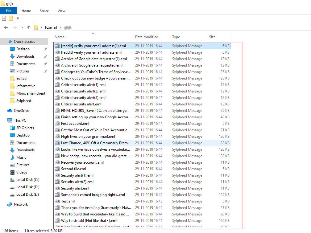 Step 4. After completion, you will find all Foxmail messages individually saved in EML file format at the chosen location.