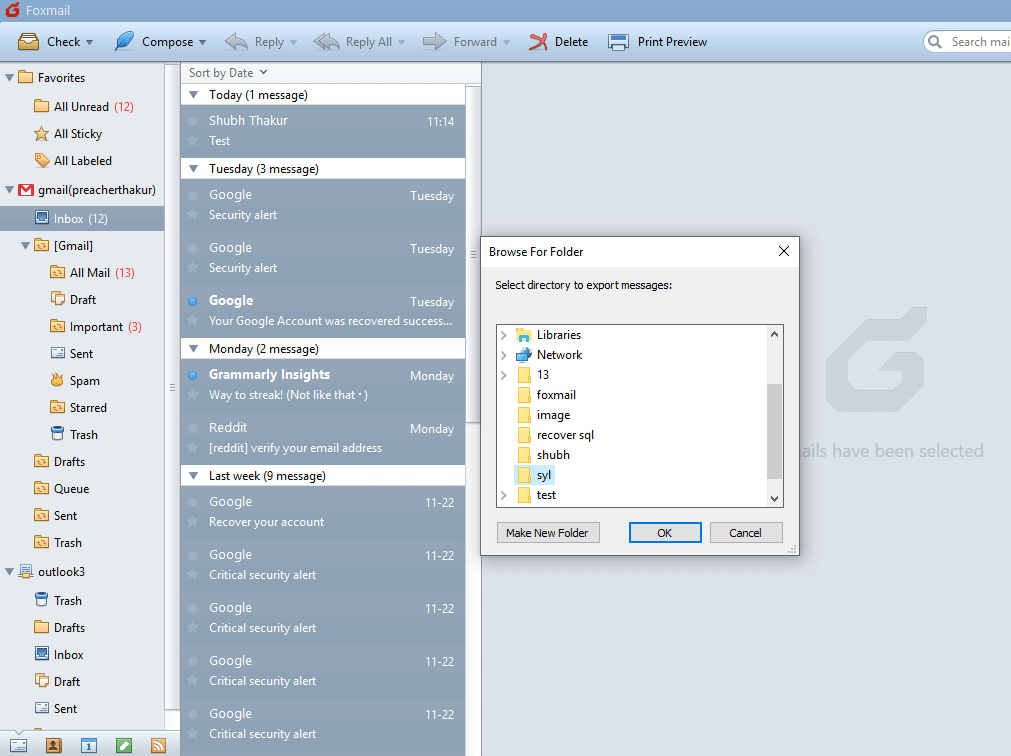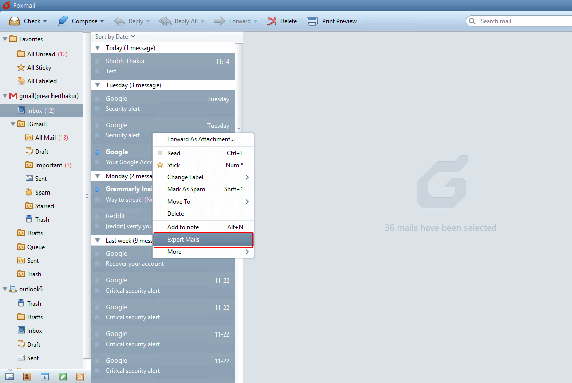 Step 1. Launch Foxmail and choose the desired emails for export. Or, you can use Ctrl + A to select all emails.