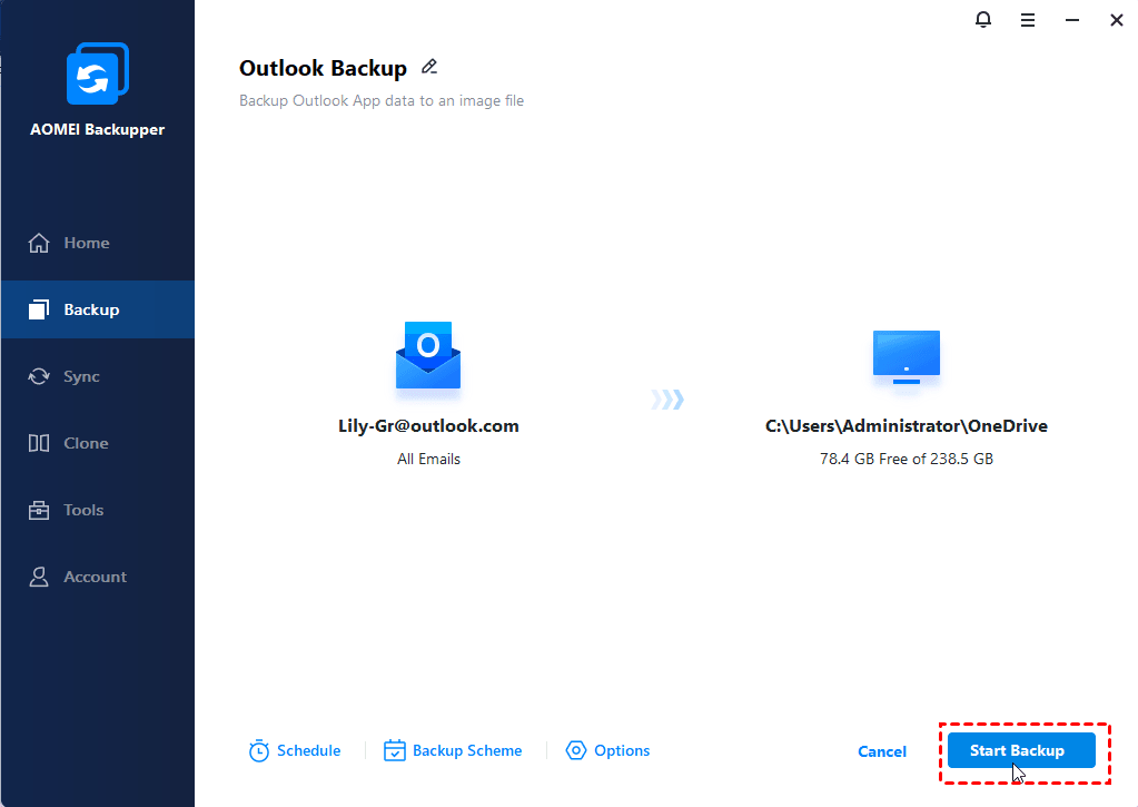 If you are looking for free Outlook backup software, after reading this article, you will not be disappointed. It has a thirty-day free trial period to let you make your decision. Besides Outlook data, AOMEI Backupper also supports you to backup emails in Microsoft 365, Gmail, Yahoo, iCloud, and Exchange. It also provides you with multiple backup types and multiple backup destinations. Apart from this, you can also use it to encrypt your backups. It acts as a reliable tool to secure your Outlook account in all aspects. Try it now!