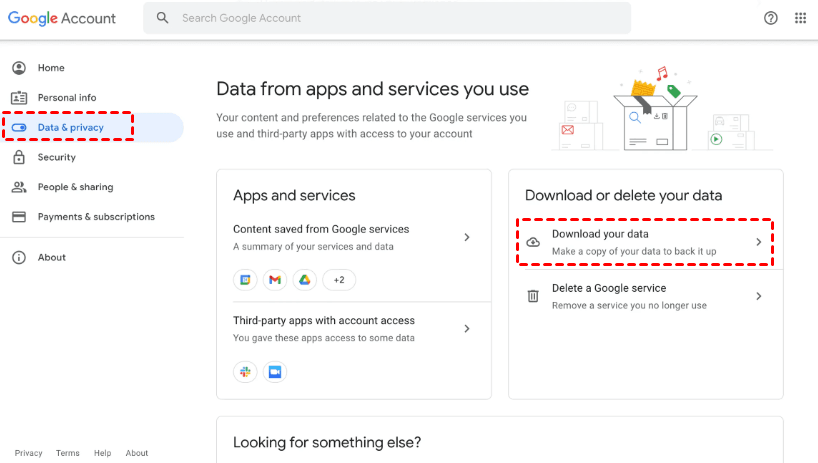 3. Scroll down to Download or delete your data. Click on Download your data.