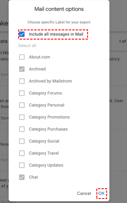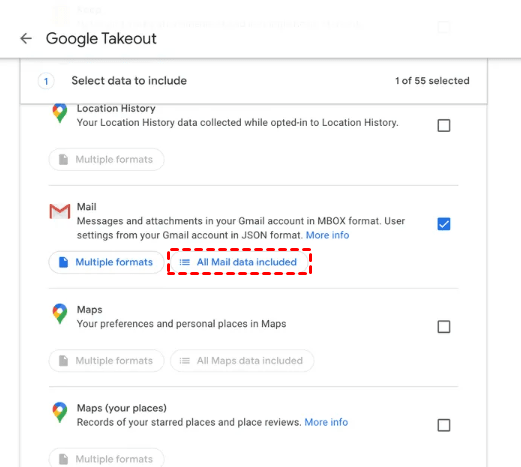 5. Scroll down to see all the various sources of data you’ll be downloading. Tap on the option that All Mail data included.