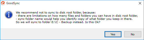 Limited features. GoodSync only supports to backup and sync files/folders. You could not backup your entire hard drive, partition, etc.