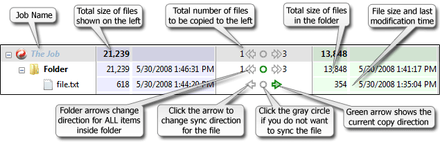 - Synchronize: It's a two-way job, from left folder to right folder and vice versa.The hidden and system files are excluded by default.