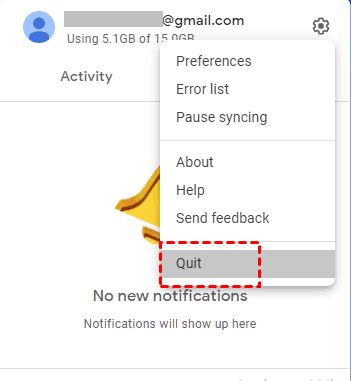 Step 2: After quitting, wait a minute and launch Google Drive again.