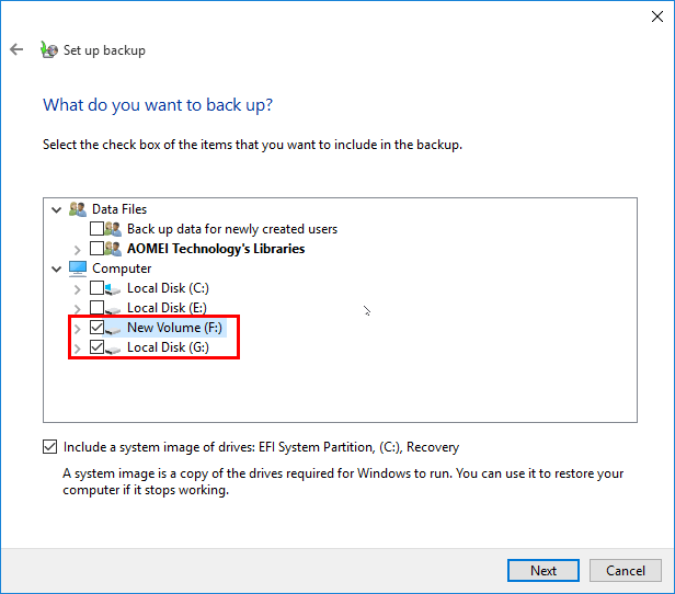 ✍ Helpful tip: Check Include a system image of the drive: EFI System Partition, (C:), Recovery option to create a system image backup for restoring Windows 7/8/10/11 in time if needed.