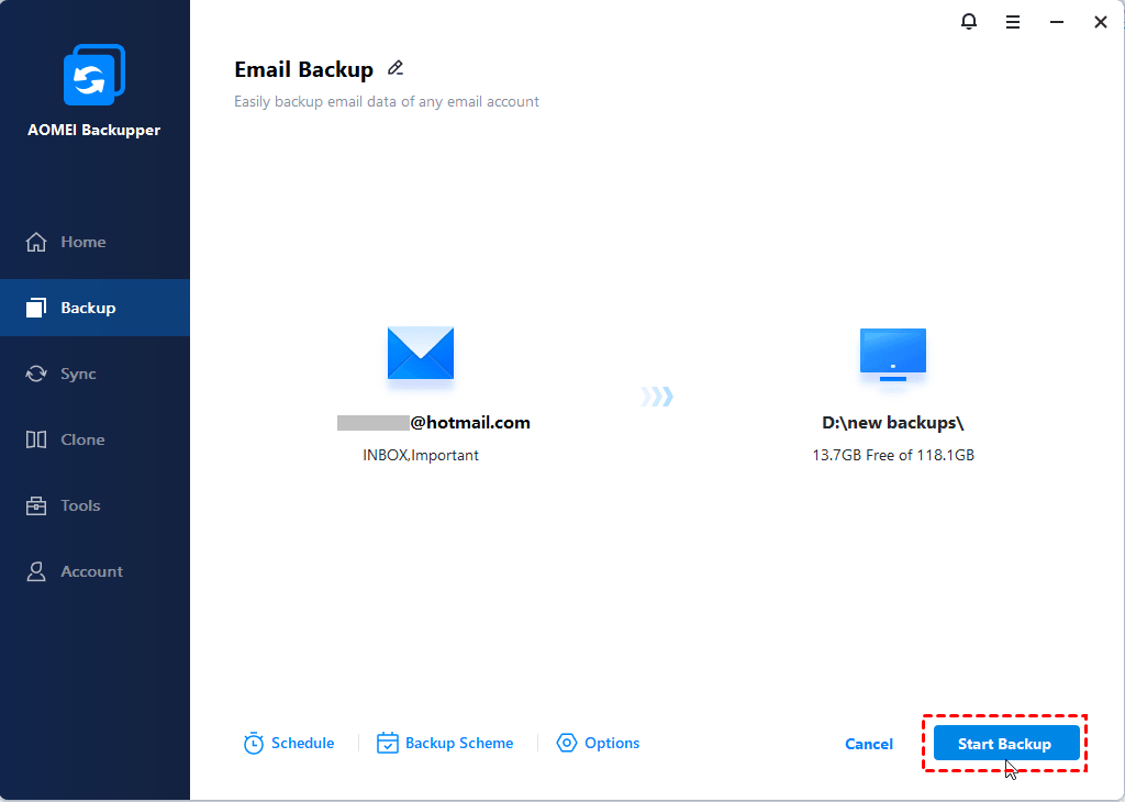 Best Hotmail Backup Tool for Windows 11/10/8/7 - AOMEI Backupper