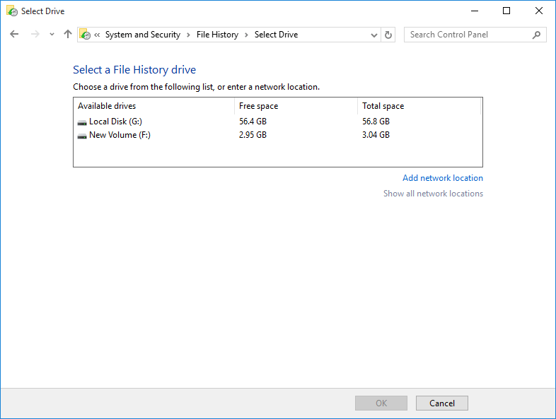 As you can see, this tool is quite convenient, but not perfect - the destination is limited to external drive or network location; the feature is mainly designed to back up user folders and cannot be used for system recovery. Moreover, sometimes you may find Windows 10 file history not backing up all files.