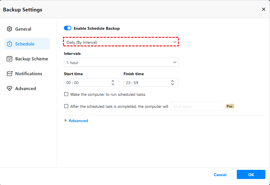 How to schedule hourly backup via AOMEI Backupper: