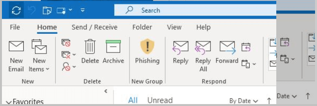 If the Phish Alert button is missing from your toolbar, you can manually add the Report Phishing option to the Ribbon.