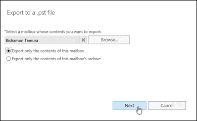 2: Select whether you want to backup the mailbox or the mailbox’s archive, and click Next.