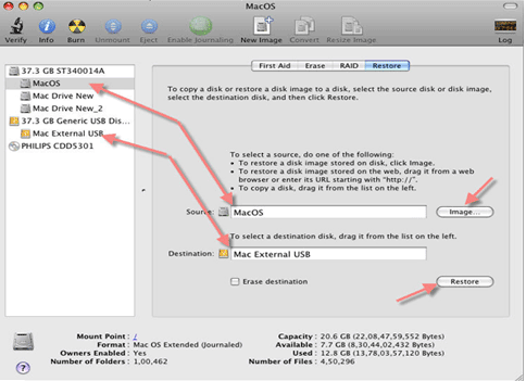 Disk Utility is a macOS and Mac OS X system utility that allows users to perform hard drives and storage drives related tasks. It's free and also comes built-in with every Mac OS. Disk Utility is designed to create clones, even though the application calls this process a Restore, just like restoring data from the source drive to the target drive.