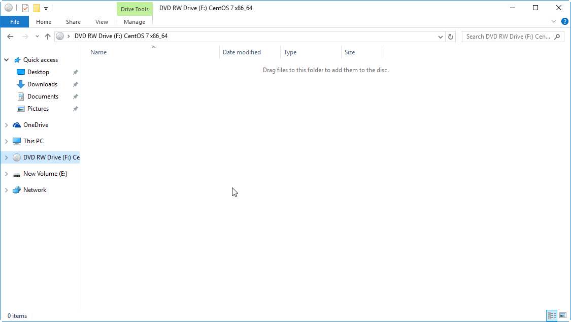 Step 2. In the DVD RW Drive window, click Burn files to disc. If this window does not pop up, go to File Explorer and manually open it.