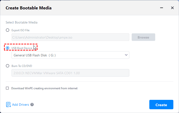 | 💿Create a bootable drive | This creates a recovery USB that can boot a problematic PC into a recovery environment for system repair or recovery. |
