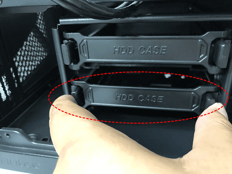 - Finally, press the clips on both sides of the bracket to remove the hard drive bay (some cases may require screws).