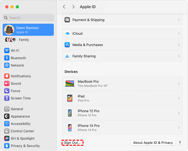 2. Click Apple ID. Scroll down to the bottom of the Apple ID settings and click on Sign Out.