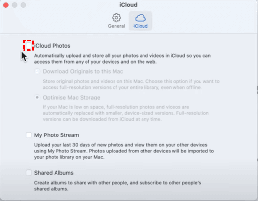 3. In the Settings/Preferences window, click on the iCloud tab and uncheck iCloud Photos to stop syncing your photos with iCloud.