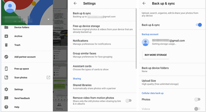 Step 2: Open Google Photos, sign in, and complete the setup. Go to Menu > Settings > Back up & sync. Select the folder containing your SD card photos to back up.