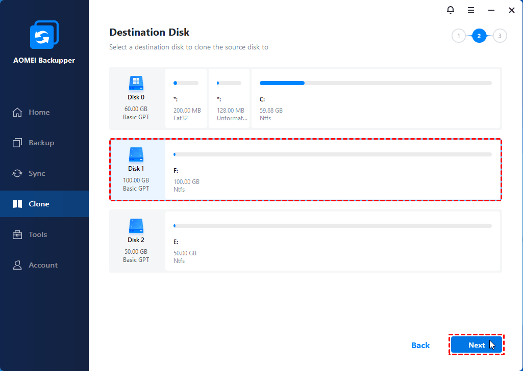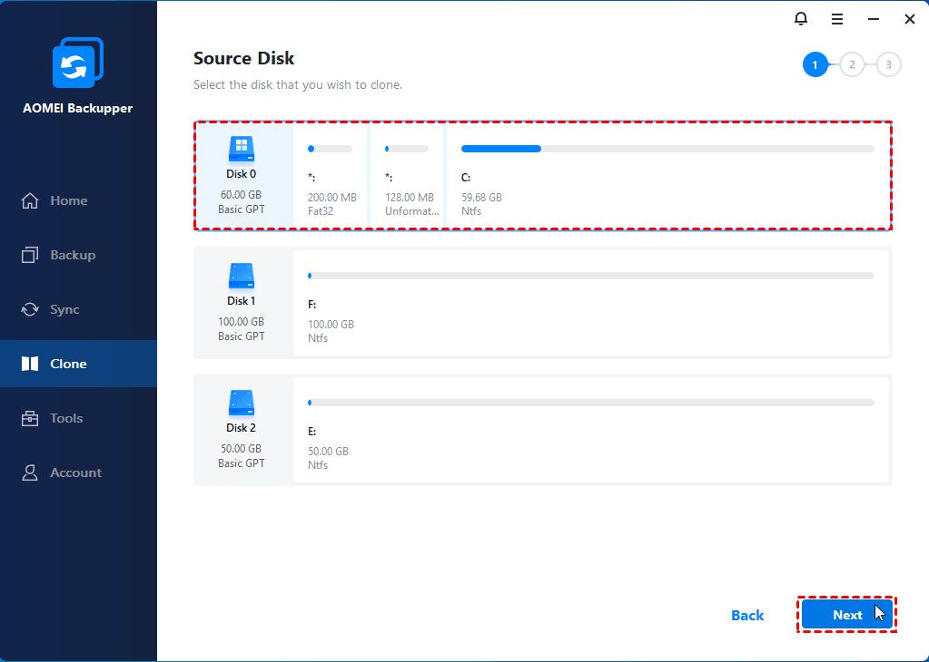 After the preparation work is completed, you can use AOMEI Backupper to clone M.2 SSD to larger M.2 SSD, please follow the graphic tutorial for details.