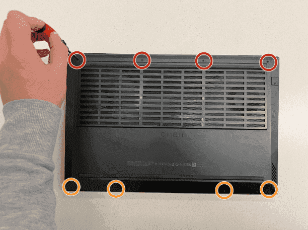 1. Unscrew the back panel of the laptop. Use a thin plastic card to gently wedge between the back panel and the laptop. Twist the card until the panel starts to separate from the laptop.