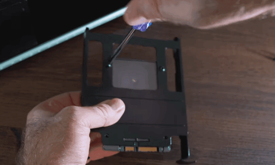3. Put the 2.5'' SATA SSD on the bracket and fix it with a screwdriver.