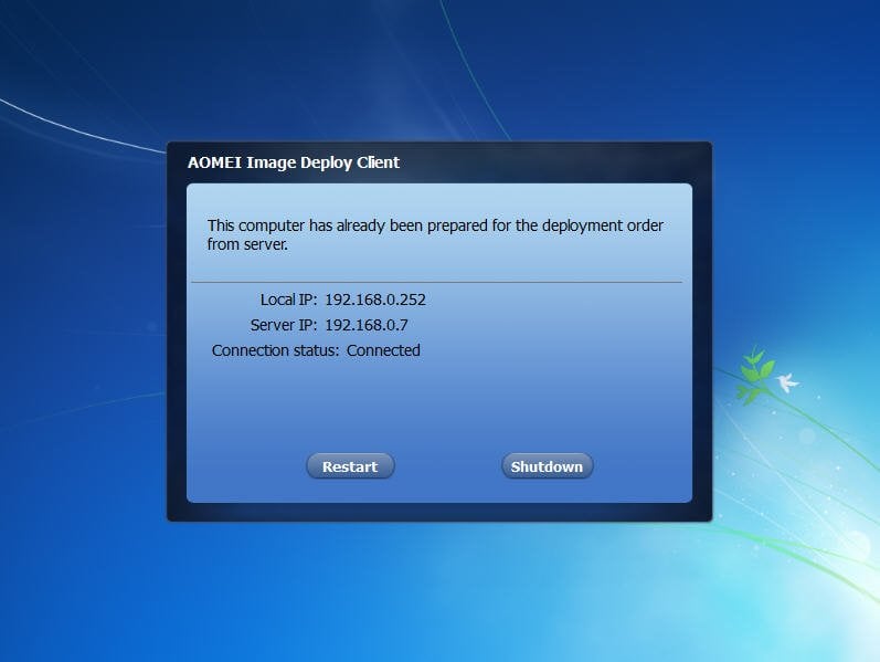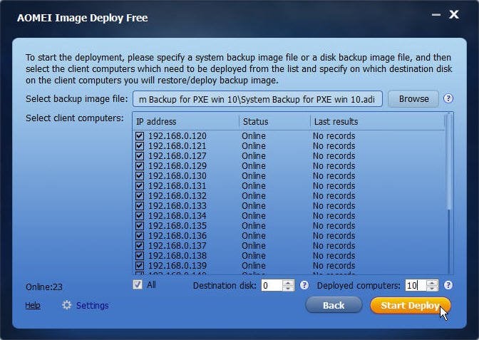 The image deployment task has never been so easy. You just need to make sure that you haven't forgotten an important setting or an important piece of software, since any mistake you make will be cloned to all the client machines. If you support a large batch of computers, AOMEI Image Deploy is the best practice.