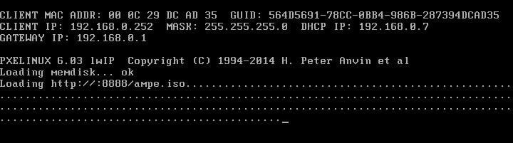 2. Once AOMEI Image Deploy shows "The service has started, waiting for connect...", start all the client computers. If all the settings are correct, the computers will boot into AOMEI Image Deploy recovery environment and each computer will display its booting progress as shown below: