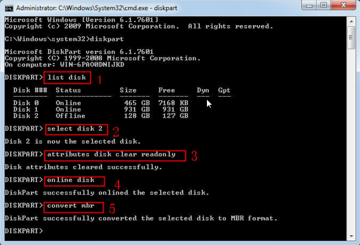 convert mbr (you can type: convert gpt if you want to initialize the disk GPT)