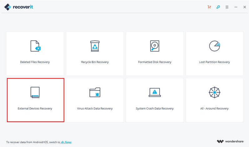 1. Install and run the Recoverit Pro on your computer where the “Not Initialized” disk connected. Click “External Devices Recovery”. If it is not an external device, choose All-Around Recovery.
