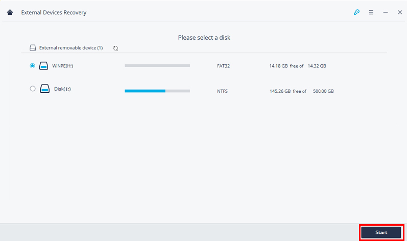 2. Select the problematic disk and click “Start”.