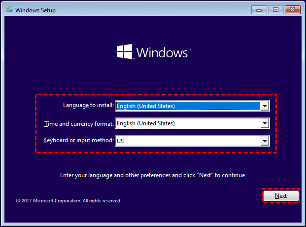 - When your computer boots from the USB stick, you can see a Windows logo. Next you need to select the language, time, currency format, keyboard or input method. Click Next and then Install now.