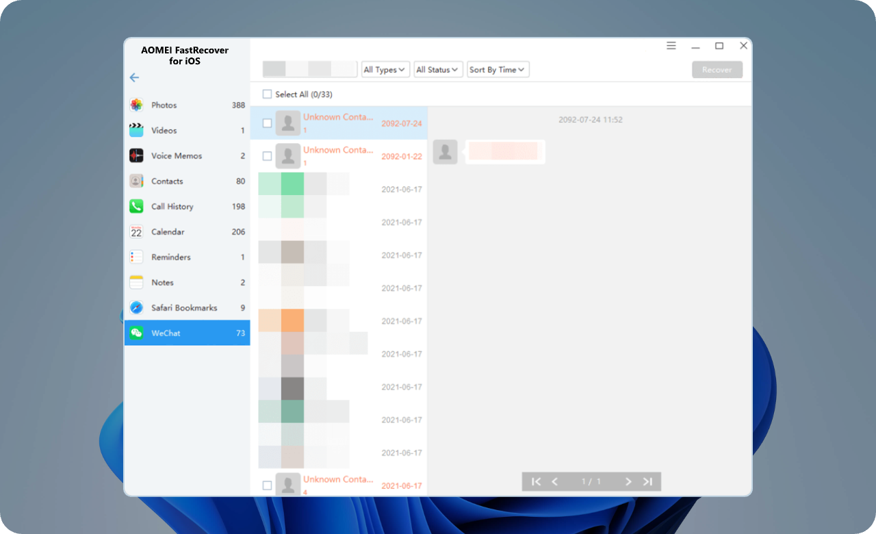 Comprehensive iPhone data recovery software supports to recover WeChat chat log, images, videos, audios, WeChat group history, etc.