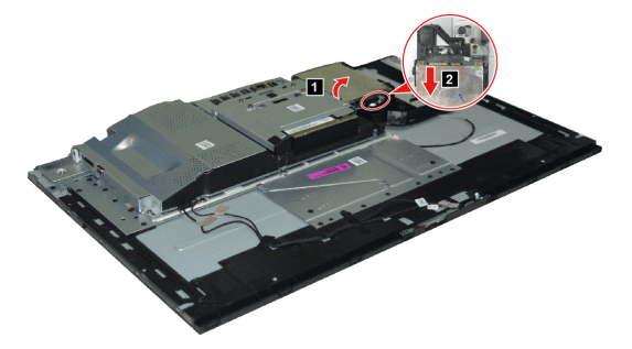 Note: To replace the M.2 SSD, besides the computer stand base, rear cover and speakers, you should also remove the middle frame, fan and system board frame before you can remove the original M.2 SSD. Get details from IdeaCentre AIO A340 Hardware Maintenance Manual.